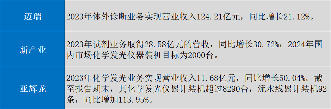 其中,化學(xué)發(fā)光更是被諸多企業(yè)視為“吸金”賽道。邁瑞、新產(chǎn)業(yè)、亞輝龍等業(yè)內(nèi)頭部企業(yè)均在該領(lǐng)域深入布局,且從近期的公開(kāi)財(cái)報(bào)來(lái)看,大規(guī)模集采落地對(duì)國(guó)產(chǎn)品牌的紅利效應(yīng)已經(jīng)開(kāi)始在業(yè)績(jī)上有所體現(xiàn)。