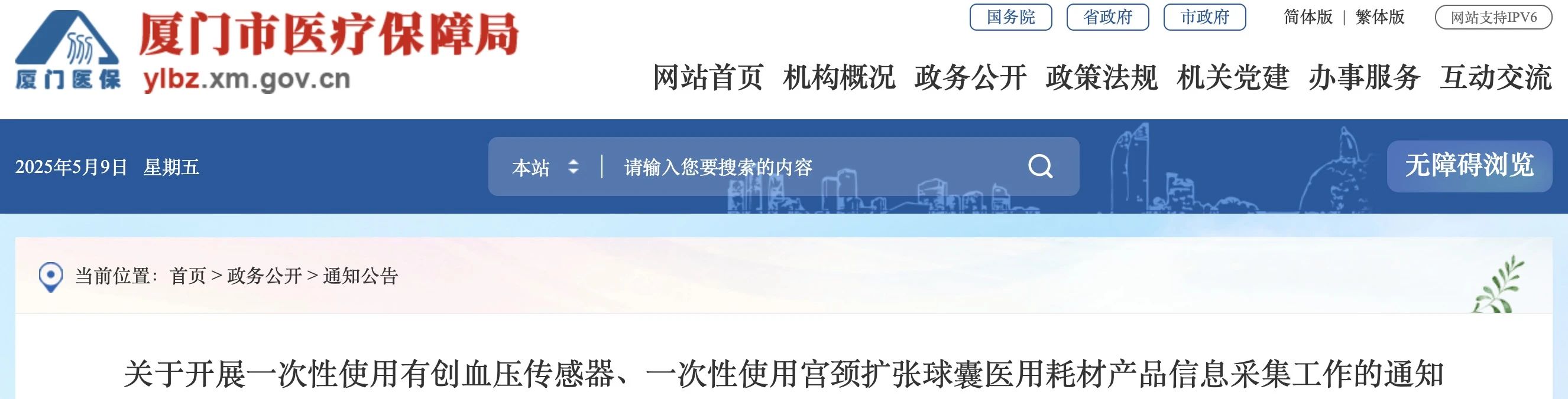 今日(5月9日),福建省廈門市醫(yī)保局發(fā)布《關于開展一次性使用有創(chuàng)血壓傳感器、一次性使用宮頸擴張球囊醫(yī)用耗材產(chǎn)品信息采集工作的通知》,信息維護時間為2025年5月12日08:00至5月20日17:00。