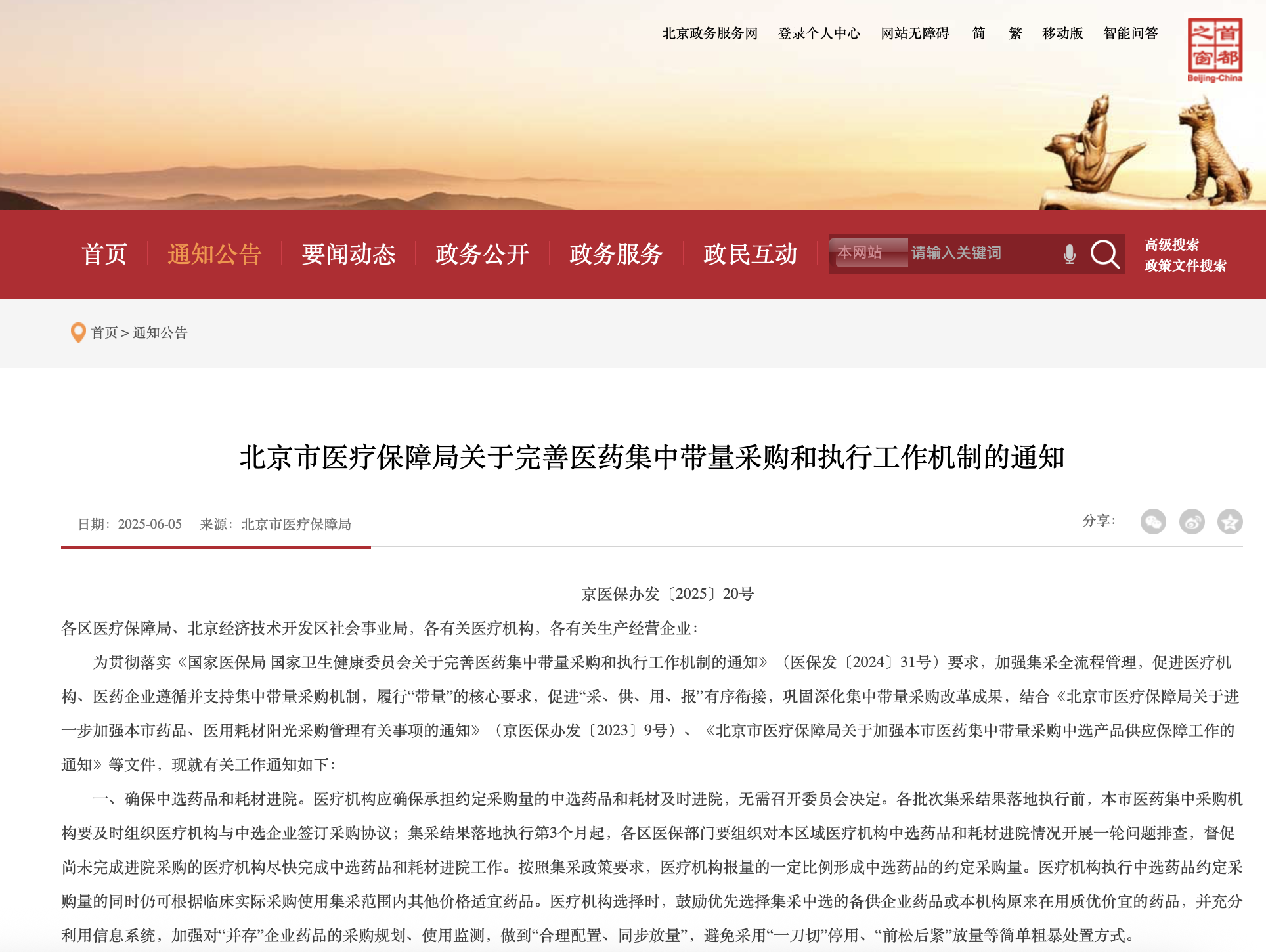近日,北京醫(yī)保局發(fā)布《北京市醫(yī)療保障局關(guān)于完善醫(yī)藥集中帶量采購和執(zhí)行工作機(jī)制的通知》(以下簡稱《通知》)(附文末)。