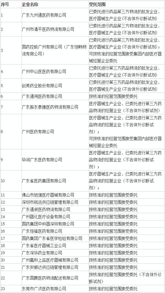 今年3月24日,廣東省食藥監(jiān)局公布了“第三方醫(yī)療器械現(xiàn)代物流試點(diǎn)企業(yè)名單”,共有23家醫(yī)療器械配送商入選。廣東公布的名單用的是“試點(diǎn)企業(yè)名單”,但試點(diǎn)名單是否就全部包括了獲得第三方配送資格的配送商名單呢?
