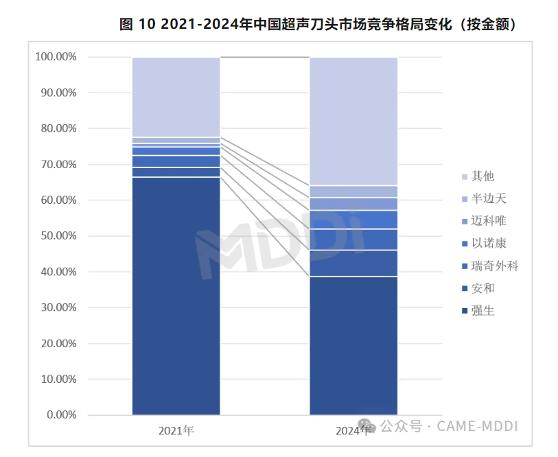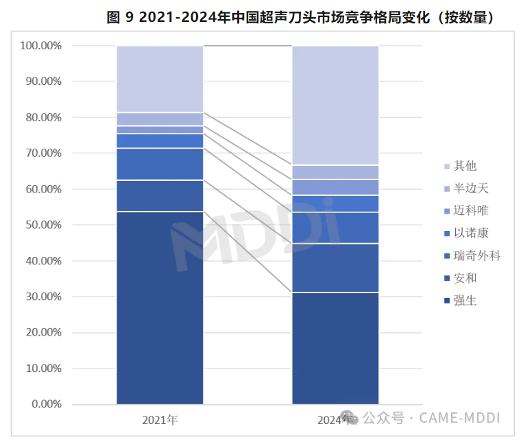 同時(shí),國產(chǎn)超聲刀頭市場占比明顯提升。