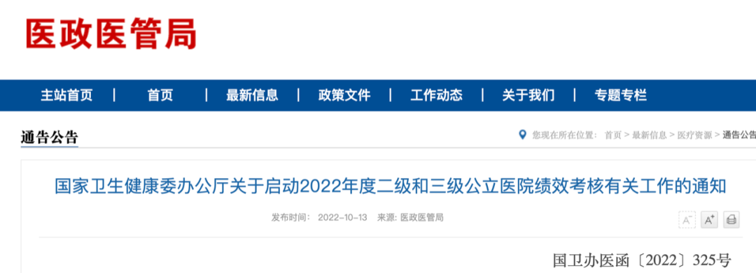 近日,國家衛(wèi)生健康委辦公廳發(fā)布《關(guān)于啟動2022年度二級和三級公立醫(yī)院績效考核有關(guān)工作的通知》(以下簡稱《通知》)。