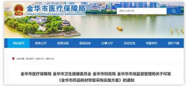 近日,浙江省金華市醫(yī)保局發(fā)布《金華市藥品耗材帶量采購實施方案》(下稱《實施方案》),明確表示在浙江省藥械采購平臺上的所有耗材,均可納入帶量集中采購價格談判范圍。