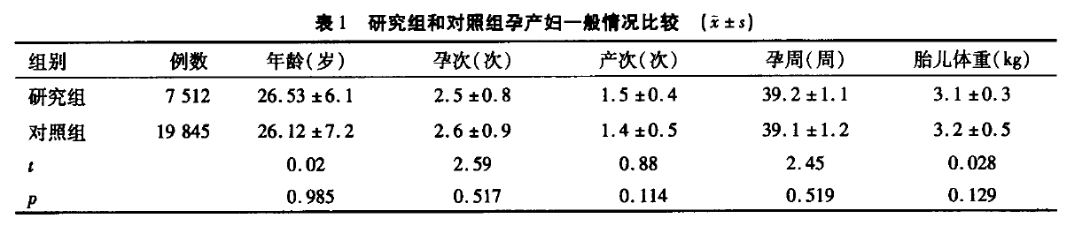 2.1研究組和對(duì)照組孕產(chǎn)婦一般情況比較