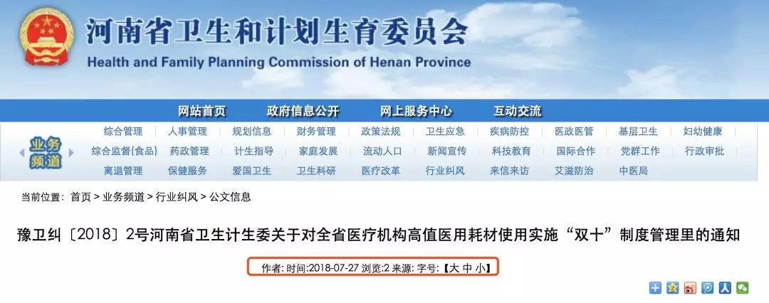 7月27日,河南省衛(wèi)生和計劃生育委員會發(fā)布《關于對全省醫(yī)療機構(gòu)高值醫(yī)用耗材使用實施“雙十”制度管理里的通知》,將全省耗材控費再升級,銷量兩次進入前10的,有可能會被停用,開單的醫(yī)生也將被上報到醫(yī)療糾風辦,在績效考核、職稱聘任、醫(yī)德醫(yī)風考評中受到影響。
