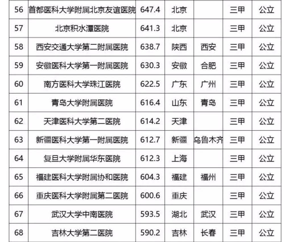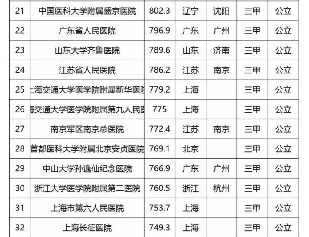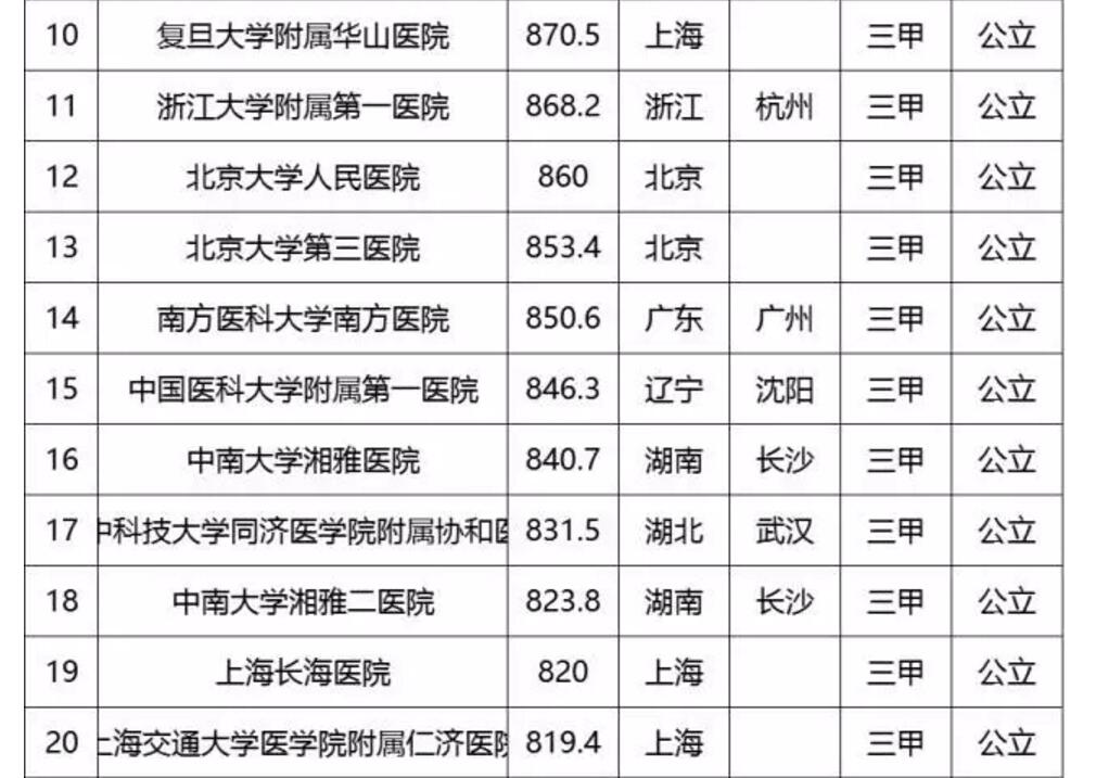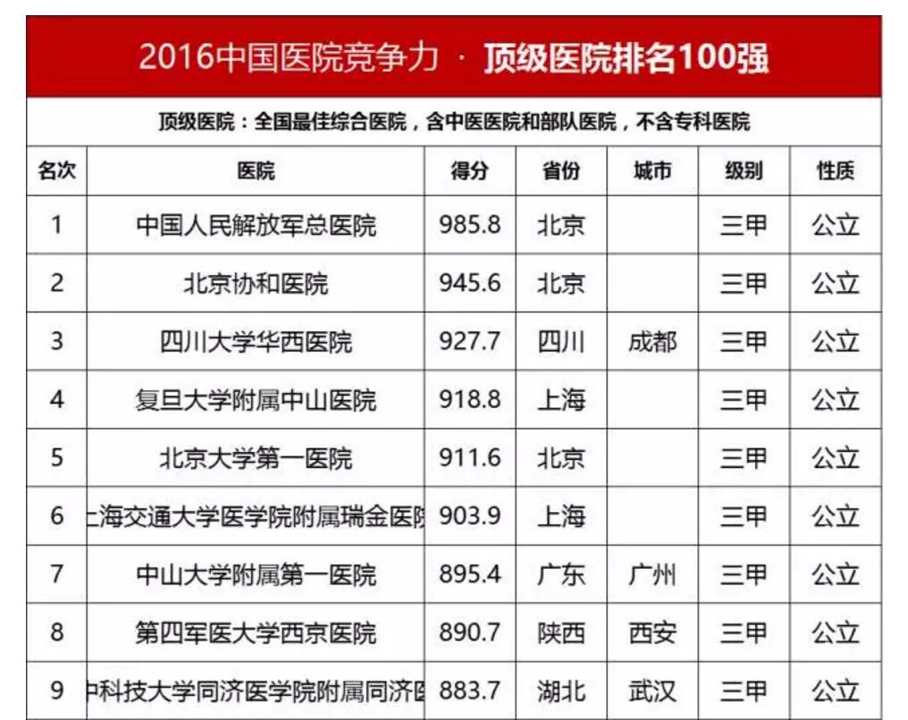 中國頂級醫(yī)院百強(qiáng)榜出爐:協(xié)和第2 華西第3