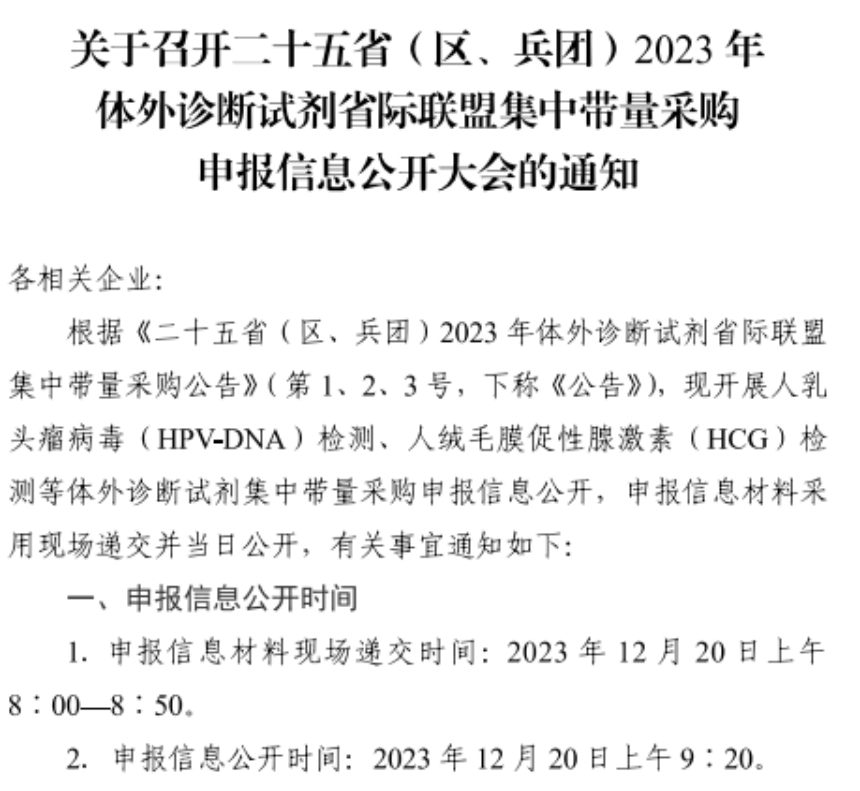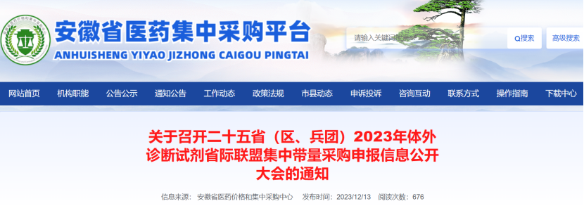 12月13日,安徽省醫(yī)藥價(jià)格和集中采購(gòu)中心發(fā)布《關(guān)于召開(kāi)二十五省(區(qū)、兵團(tuán))2023年體外診斷試劑省際聯(lián)盟集中帶量采購(gòu)申報(bào)信息公開(kāi)大會(huì)的通知》(以下簡(jiǎn)稱(chēng)《通知》)。