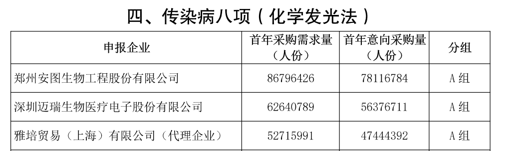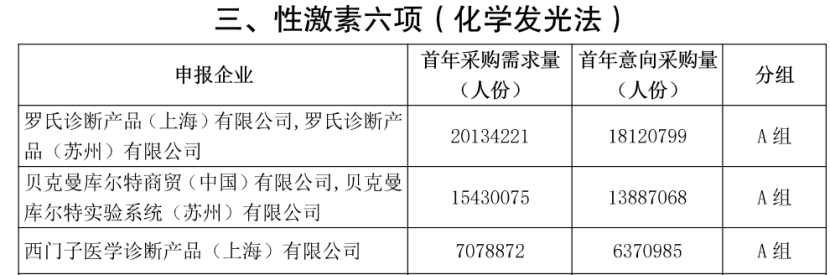 此前,《二十五省(區(qū)、兵團(tuán))2023 年體外診斷試劑省際聯(lián)盟集中帶量采購(gòu)公告(第3號(hào))》中已經(jīng)公布了申報(bào)企業(yè)首年采購(gòu)需求量、首年意向采購(gòu)量及分組情況。
