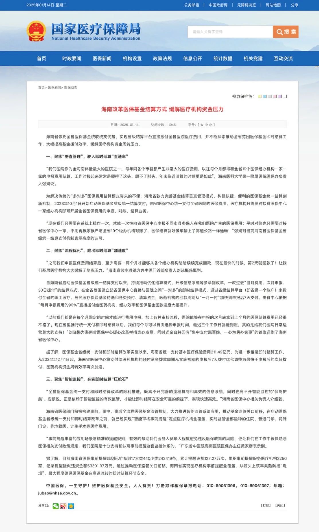 海南早在2023年就啟動(dòng)了醫(yī)保基金省級(jí)統(tǒng)一結(jié)算支付,其后一改過去“當(dāng)月費(fèi)用、次月申報(bào)、30日撥付”的結(jié)算方式,在全省范圍建立起省醫(yī)保中心直接與醫(yī)院之間“一對(duì)多”的即時(shí)結(jié)算模式,通過省級(jí)結(jié)算平臺(tái)撥付全省職工醫(yī)療、居民醫(yī)療保險(xiǎn)基金待遇和各類預(yù)付、清算資金,醫(yī)藥機(jī)構(gòu)的回款周期從“一月一付”加快到申報(bào)后7天支付,由省中心依據(jù)“每月申報(bào)費(fèi)用的90%”直接撥付給醫(yī)藥機(jī)構(gòu),經(jīng)辦效率和醫(yī)?;鸹乜钏俣却蠓嵘?。