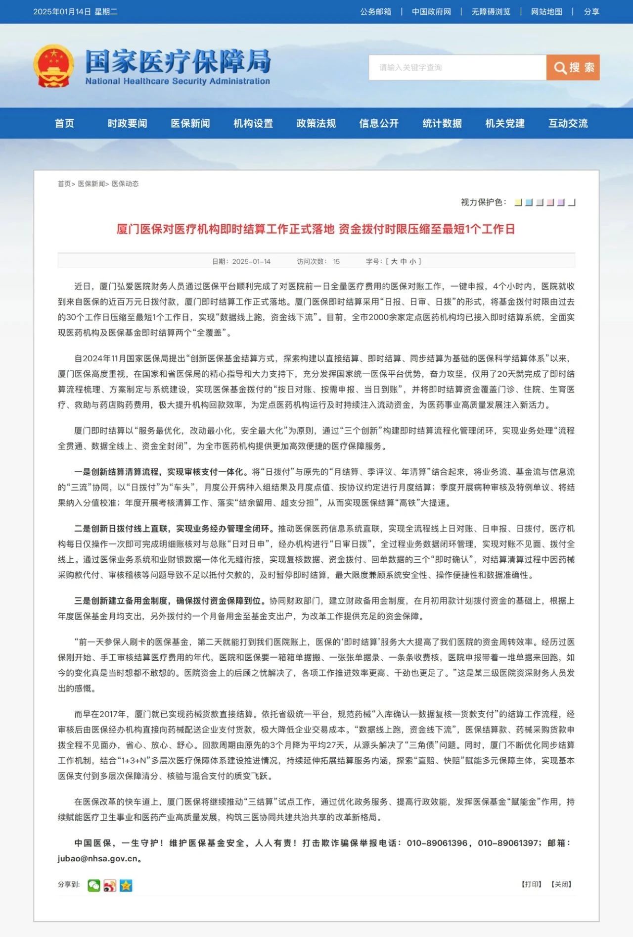 據(jù)國家醫(yī)保局披露,安徽省醫(yī)保局落實(shí)國家醫(yī)保局部署,自今年1月1日起實(shí)行醫(yī)?;鸾Y(jié)算改革新模式。在國家醫(yī)保局黨組書記、局長章軻的關(guān)心指導(dǎo)下,安徽省創(chuàng)新“日撥付、月結(jié)算、年清算”的醫(yī)?;鸾Y(jié)算機(jī)制?;颊咿k理出院結(jié)算時(shí),醫(yī)保信息平臺(tái)業(yè)務(wù)子系統(tǒng)實(shí)時(shí)抓取患者的醫(yī)保結(jié)算信息,自動(dòng)按照醫(yī)?;鹬Ц督痤~的60%予以撥付。