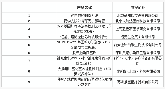 這66項(xiàng)創(chuàng)新醫(yī)療器械中,已經(jīng)有9項(xiàng)獲批上市了。分別為: