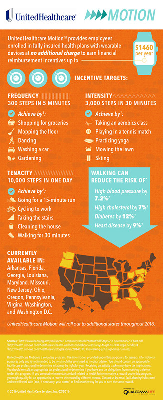 “UnitedHealthcare Motion將可穿戴科技、遠程醫(yī)療和健康激勵結合起來使員工掌握自己的健康,同時使雇主更有效地管理醫(yī)療花費,”UnitedHealthcare首席醫(yī)療官Sam Ho說。“員工可以通過每天走路來改善健康還能得到物質獎勵,這種技術不僅簡單、安全,還很直觀。”他們希望通過這種方式促進員工養(yǎng)成更健康的生活方式。