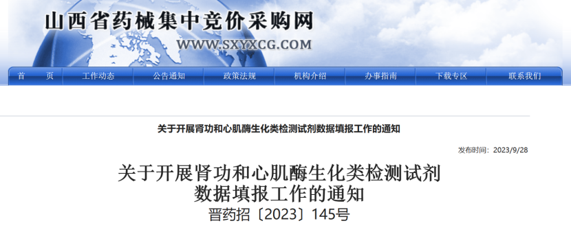 近日,四川、湖北、內(nèi)蒙古、山西等多省發(fā)布通知,根據(jù)腎功和心肌酶生化類檢測試劑省際聯(lián)盟集中帶量采購工作領(lǐng)導(dǎo)小組《關(guān)于開展腎功和心肌酶生化類檢測試劑數(shù)據(jù)填報工作的通知》(〔2023〕4號)要求,組織開展腎功和心肌酶生化類檢測試劑數(shù)據(jù)填報工作。