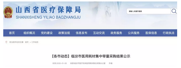 2020年1月6日,據(jù)山西省醫(yī)保局發(fā)布耗材帶量采購(gòu)中標(biāo)結(jié)果,公示了耗材的降價(jià)幅度和采購(gòu)量。