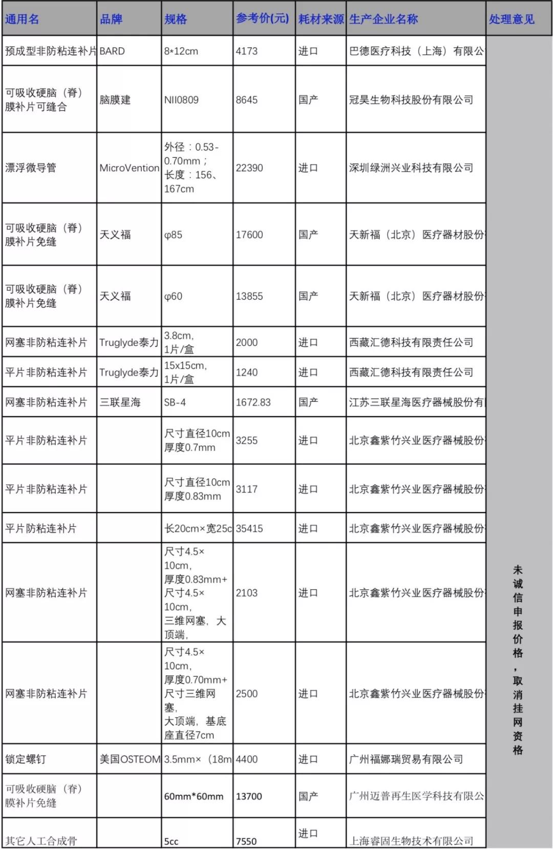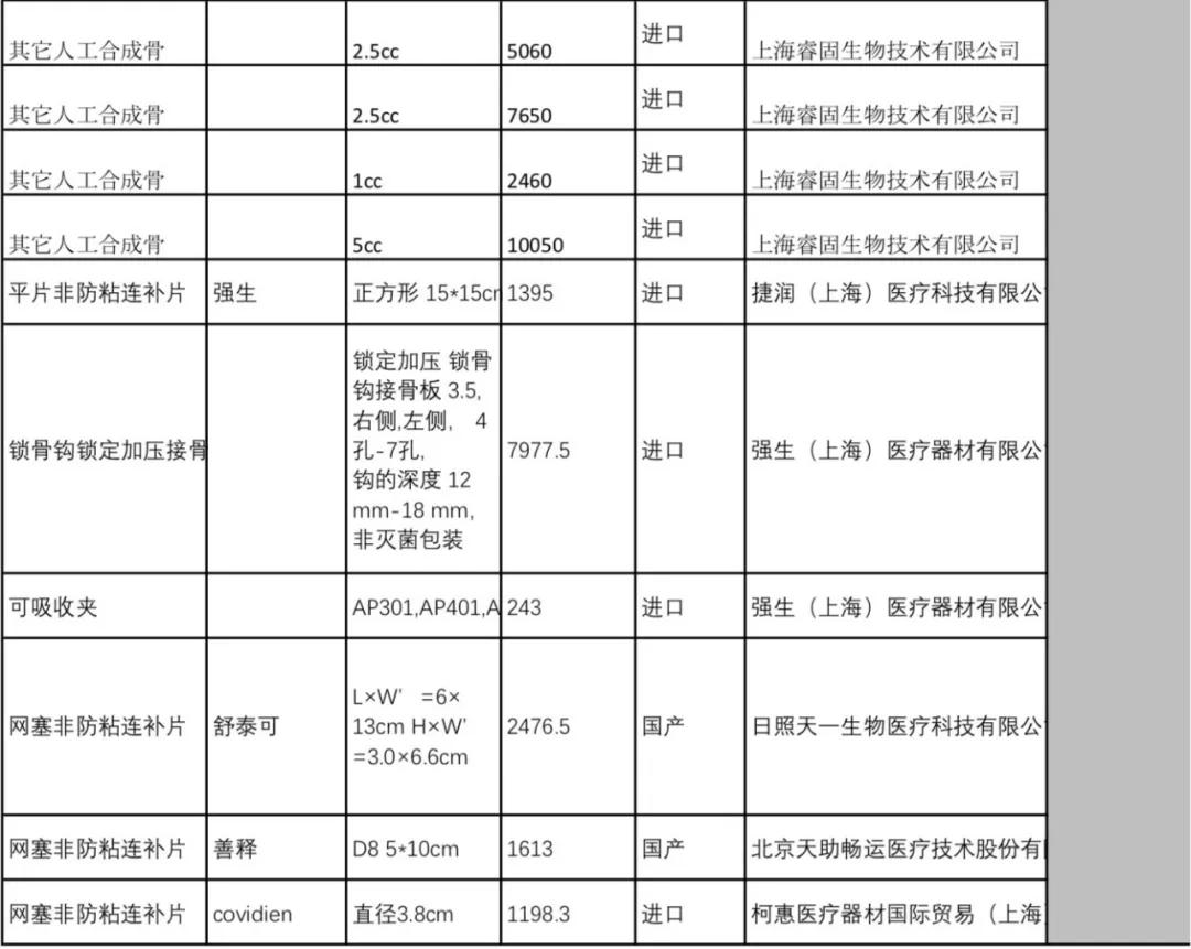 上海睿固生物技術(shù)有限公司的5款“其它人工合成骨”產(chǎn)品,報價從2460元至10050元不等,均被處理為未誠信申報價格。