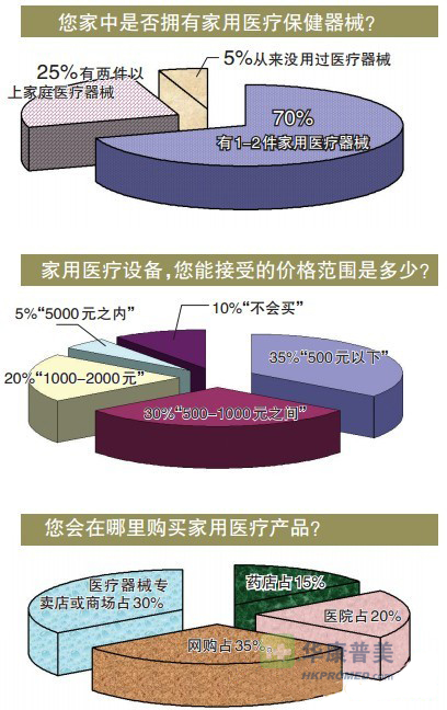 “如果需要,您會(huì)在哪里購(gòu)買家用醫(yī)療產(chǎn)品?”回答顯示,藥店占15%;醫(yī)院占20%;醫(yī)療器械專賣店或商場(chǎng)占30%;網(wǎng)購(gòu)占35%。