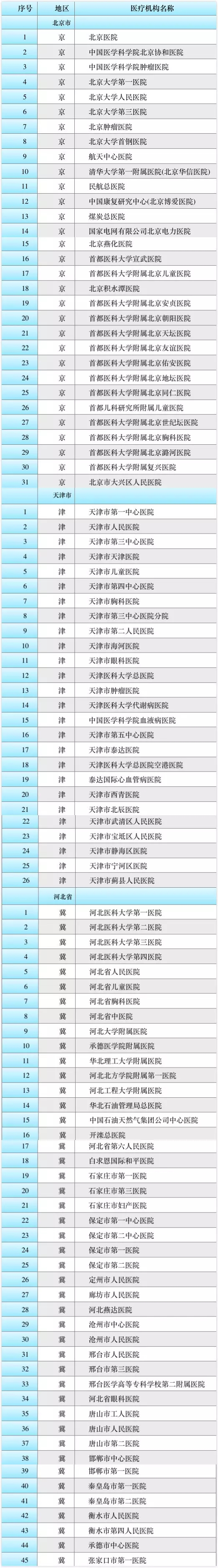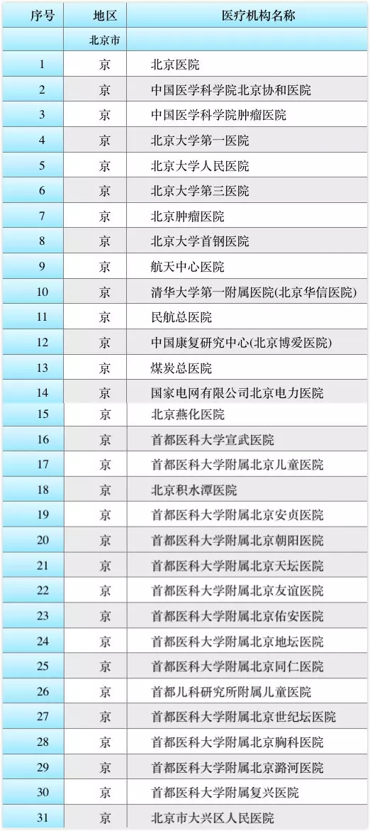 102家醫(yī)療機(jī)構(gòu)參與首批試點(diǎn)工作,北京31家名單