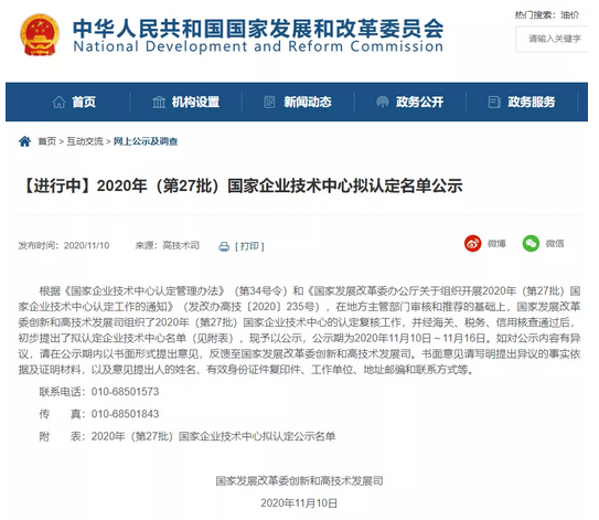 醫(yī)藥網(wǎng)11月17日訊 近日,國家發(fā)展改革委創(chuàng)新和高技術(shù)發(fā)展司發(fā)布公告稱,在地方主管部門審核和推薦的基礎(chǔ)上,組織了2020年(第27批)國家企業(yè)技術(shù)中心的認(rèn)定復(fù)核工作,并經(jīng)海關(guān)、稅務(wù)、信用核查通過后,初步提出了擬認(rèn)定企業(yè)技術(shù)中心名單,于2020年11月10日~11月16日進(jìn)行公示。