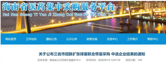 醫(yī)藥網(wǎng)9月16日訊 9月14日,海南省醫(yī)藥集中采購服務(wù)平臺發(fā)布《關(guān)于公布三省市冠脈擴(kuò)張球囊聯(lián)合帶量采購中選企業(yè)結(jié)果的通知》,公布貴州省、重慶市、海南省三省市冠脈球囊聯(lián)合集中帶量采購中選企業(yè)結(jié)果。
