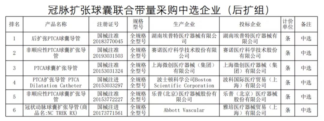 后擴(kuò)組冠脈擴(kuò)張球囊中選企業(yè)包括湖南埃普特、賽諾醫(yī)療、上海微創(chuàng)、波科、樂普、雅培。