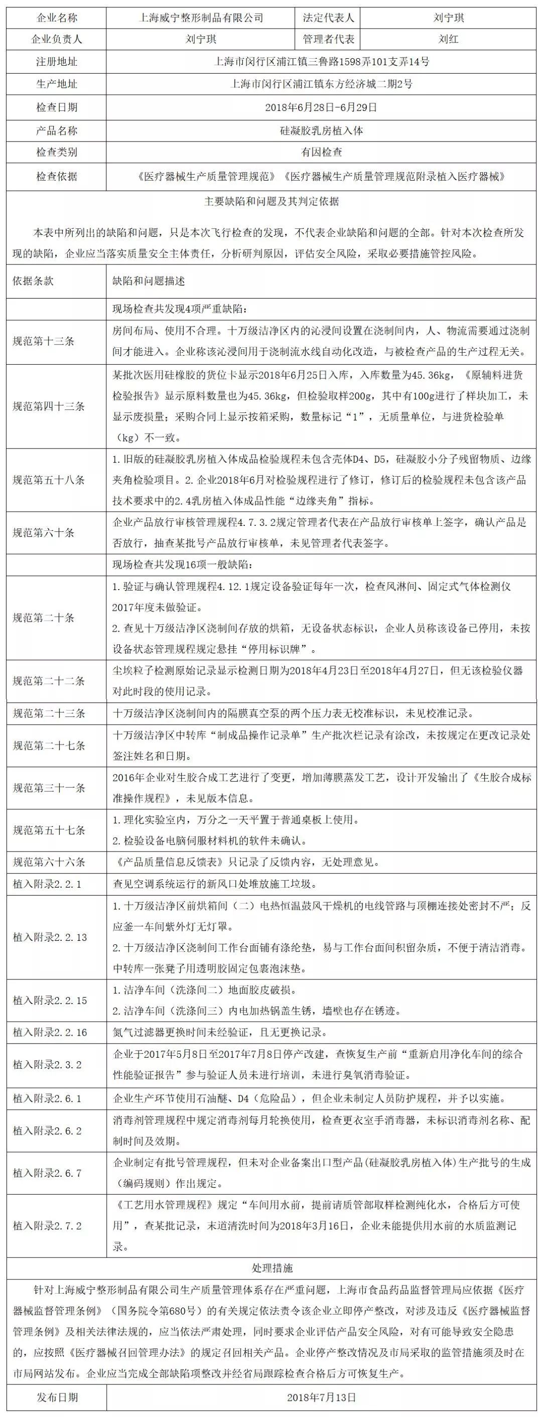 附件:對上海威寧整形制品有限公司飛行檢查通報(bào)