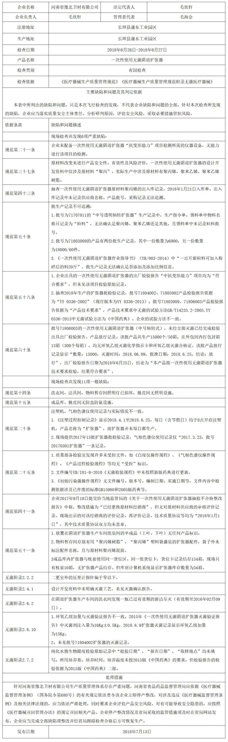 附件:對河南省豫北衛(wèi)材有限公司飛行檢查通報(bào)