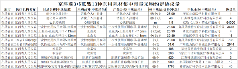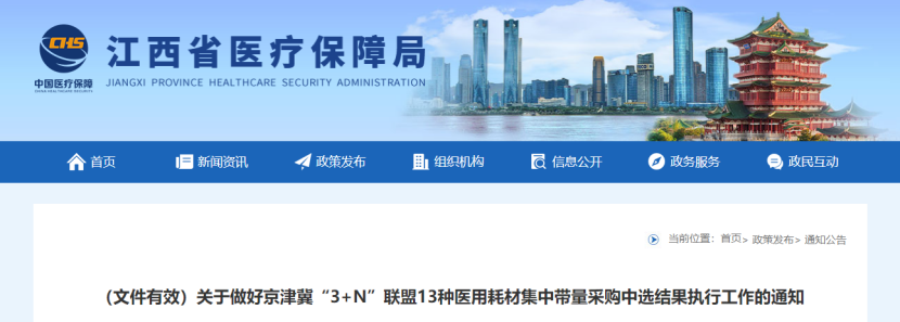 根據(jù)上述通知,自2024年8月1日零時(shí)起,江西醫(yī)療機(jī)構(gòu)執(zhí)行京津冀“3+N”聯(lián)盟13種醫(yī)用耗材集中帶量采購(gòu)及骨科創(chuàng)傷類(lèi)醫(yī)用耗材集中帶量采購(gòu)中選結(jié)果。采購(gòu)周期為2年,第一年采購(gòu)周期自2024年8月1日至2025年7月31日。