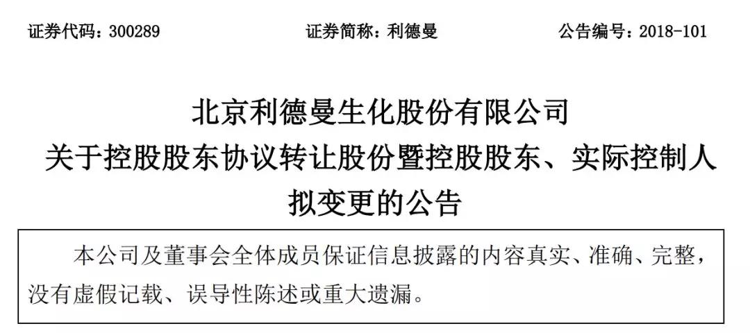 11月9日,A股上市企業(yè)利德曼(全稱:北京利德曼生化股份有限公司)發(fā)布控股股東、實(shí)際控制人擬變更的公告。根據(jù)公告,利德曼的控股股東邁迪卡(全稱:北京邁迪卡科技有限公司)、沈廣仟與凱得科技(全稱:廣州凱得科技發(fā)展有限公司)于11月9日簽訂《股份轉(zhuǎn)讓協(xié)議》。