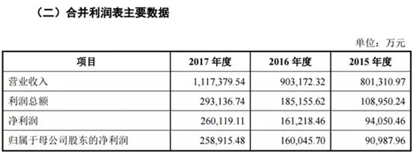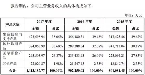 招股說(shuō)明書亦顯示,邁瑞在2017年度的營(yíng)業(yè)收入為1117379.54萬(wàn)元,首次實(shí)現(xiàn)了營(yíng)收超過(guò)百億元大關(guān),與2016年相比,同比增長(zhǎng)近24%。