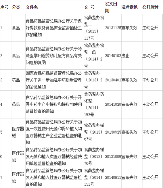 食藥監(jiān)總局發(fā)布第二批規(guī)范性文件的清理結(jié)果