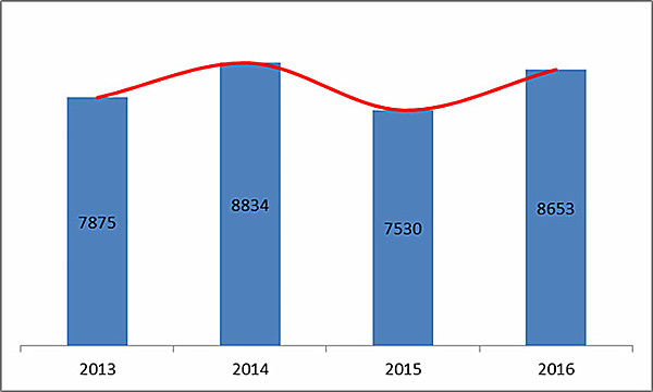 圖5.2013-2016年度注冊數(shù)據(jù)圖