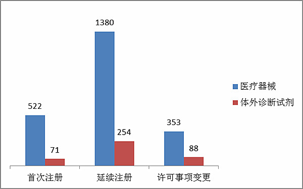 2016年,食品藥品監(jiān)管總局共受理醫(yī)療器械注冊、延續(xù)注冊和許可事項變更申請8920項,與2015年相比注冊受理項目減少5.1%。