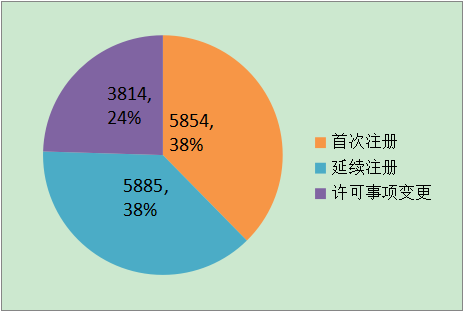 2016年,各省級食品藥品監(jiān)管部門共批準(zhǔn)境內(nèi)第二類醫(yī)療器械注冊15553項,與2015年相比增長26.4%。其中首次注冊5854項,延續(xù)注冊5885項,許可事項變更注冊3814項。