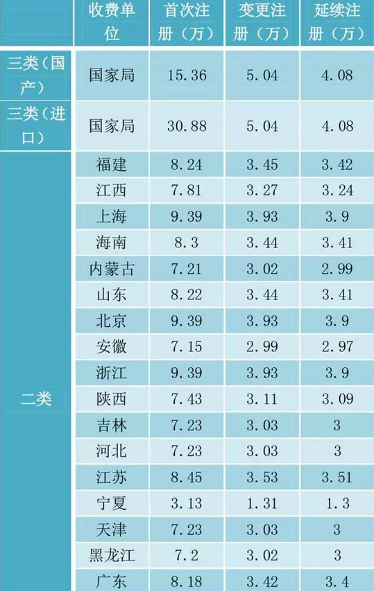 19省市第二類醫(yī)療器械注冊(cè)費(fèi)一覽表