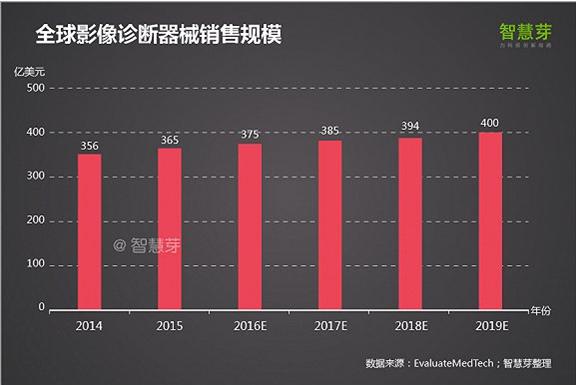 1) 2016年全球影像診斷設(shè)備銷售額達(dá)365億美元,預(yù)計(jì)2019年市場銷售將達(dá)到400億元。