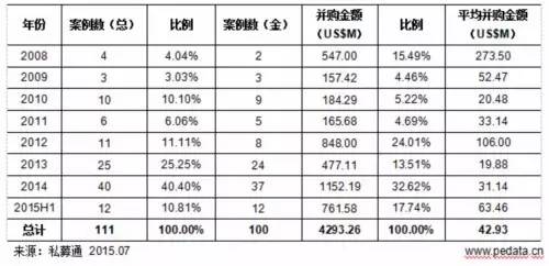 并購規(guī)模2014年達(dá)到頂峰,平均交易金額2012年最高
