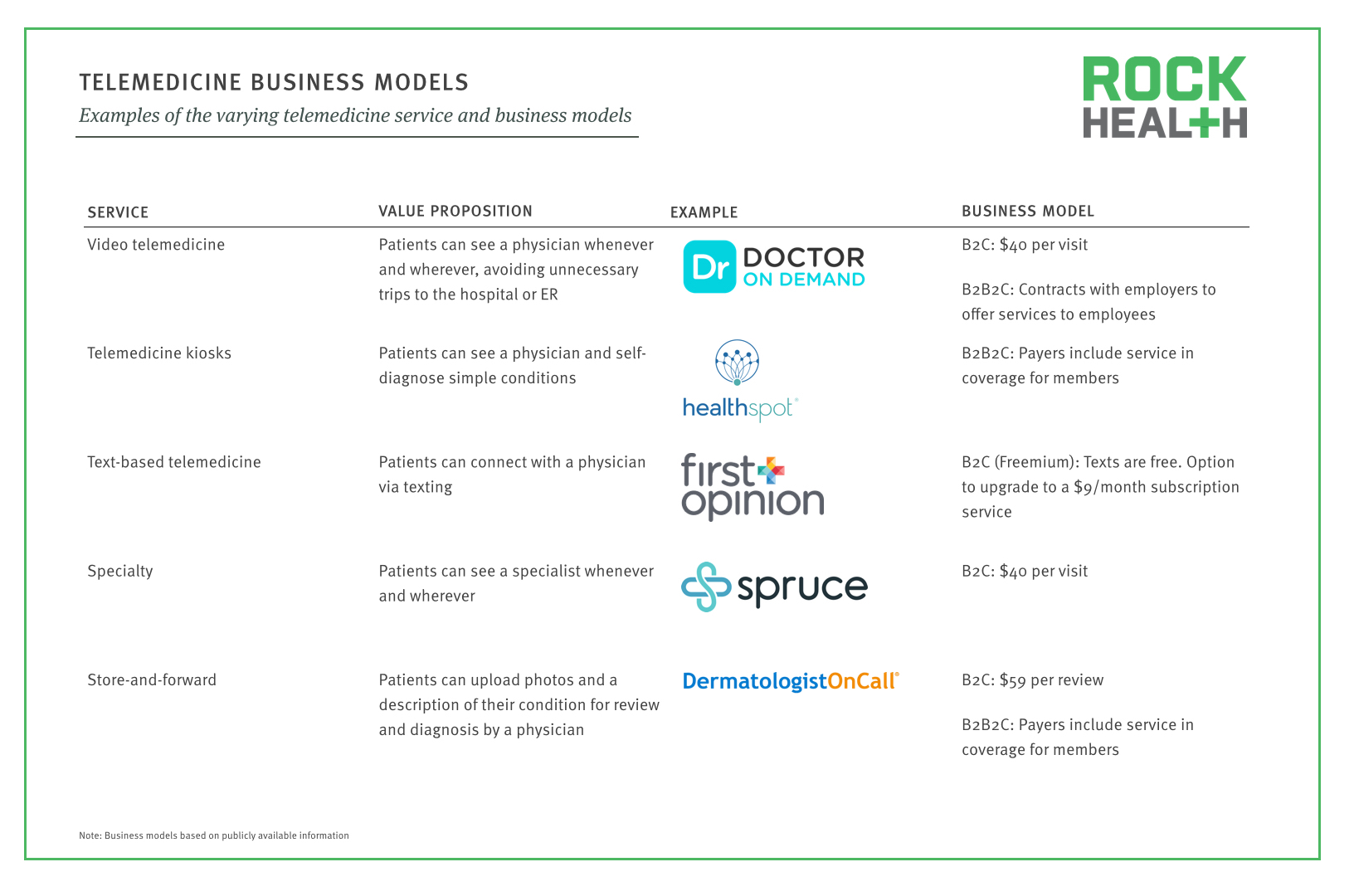隨著遠程醫(yī)療服務報銷的不確定性逐漸減少,各個公司都開始嘗試各種辦法和商業(yè)模式,試圖為患者提供遠程醫(yī)療服務。