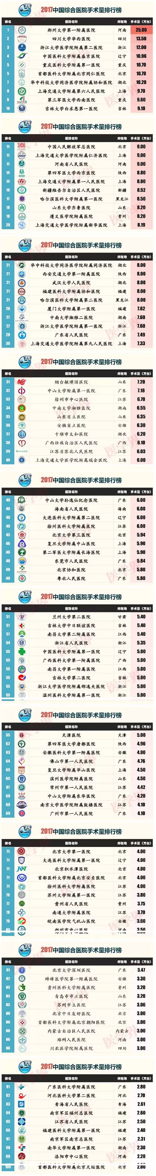 2017中國綜合醫(yī)院手術(shù)量排行榜出爐