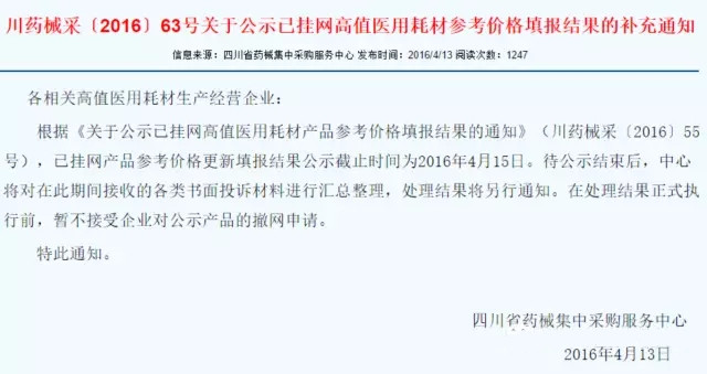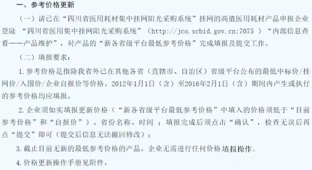 今年2月18日,四川省藥械集采中心下發(fā)通知,要求企業(yè)對各自已掛網(wǎng)產(chǎn)品的最低參考價格進行更新。