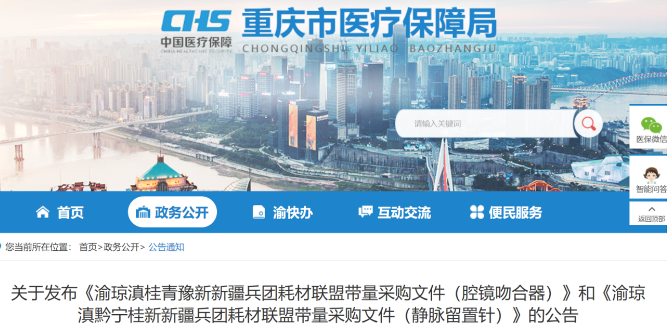 10月22日,重慶市醫(yī)保局發(fā)布《渝瓊滇桂青豫新新疆兵團耗材聯(lián)盟帶量采購文件(腔鏡吻合器)》,重慶、海南、云南、廣西、青海、河南、新疆、新疆生產(chǎn)建設(shè)兵團(自治區(qū)、直轄市)聯(lián)盟帶量采購正式啟動,集采產(chǎn)品為一次性腔鏡用直線型切割吻合器及組件(含電動吻合器及組件)。