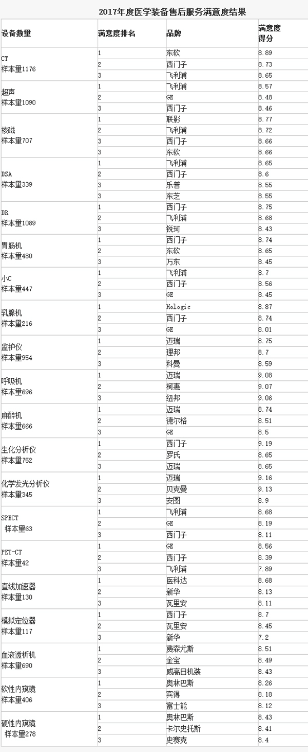 2017年度醫(yī)學(xué)裝備售后服務(wù)滿意度結(jié)果
