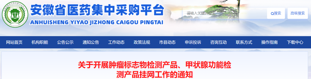 今日(9月12日),安徽省醫(yī)藥價(jià)格和集中采購(gòu)中心發(fā)布《關(guān)于開(kāi)展腫瘤標(biāo)志物檢測(cè)產(chǎn)品、甲狀腺功能檢測(cè)產(chǎn)品掛網(wǎng)工作的通知》(簡(jiǎn)稱《通知》),申報(bào)時(shí)間為2024年9月13日-9月20日。