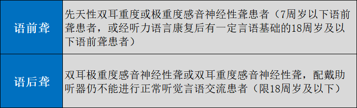 參保人員需符合以下人工耳蝸適應(yīng)癥之一的可納入醫(yī)保支付范圍: