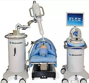 可彎曲機(jī)器人The Flex 就如其名所示,是一種柔性管狀機(jī)器人。醫(yī)生將其插入患者的嘴巴,通過(guò)操縱桿來(lái)控制其移動(dòng)。醫(yī)生可通過(guò)前端有的攝像頭在患者氣管內(nèi)移動(dòng)機(jī)器人。因其可看到并到達(dá)非常難到達(dá)的解剖區(qū)域,諸如Goldenberg一樣的外科醫(yī)生開(kāi)始使用可彎曲機(jī)器人The Flex進(jìn)行手術(shù),這樣就不用在患者下巴或其他位置進(jìn)行切口手術(shù)了。Goldenberg說(shuō)這種方式不僅手術(shù)快速便捷,醫(yī)療成本更低,同時(shí)還不會(huì)給患者留下創(chuàng)口。