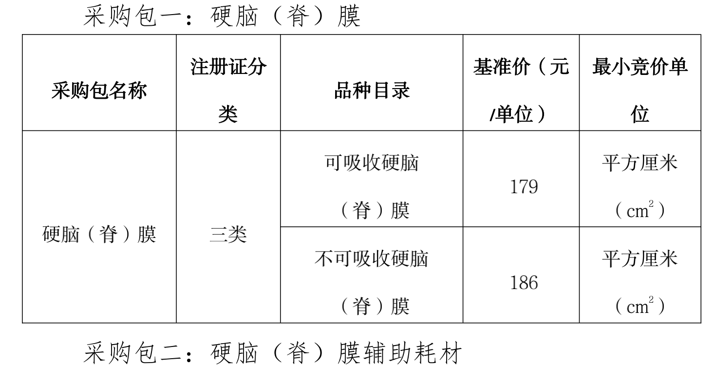 硬腦(脊)膜醫(yī)用耗材集中帶量采購品種含硬腦(脊)膜和硬腦(脊)膜輔助耗材。