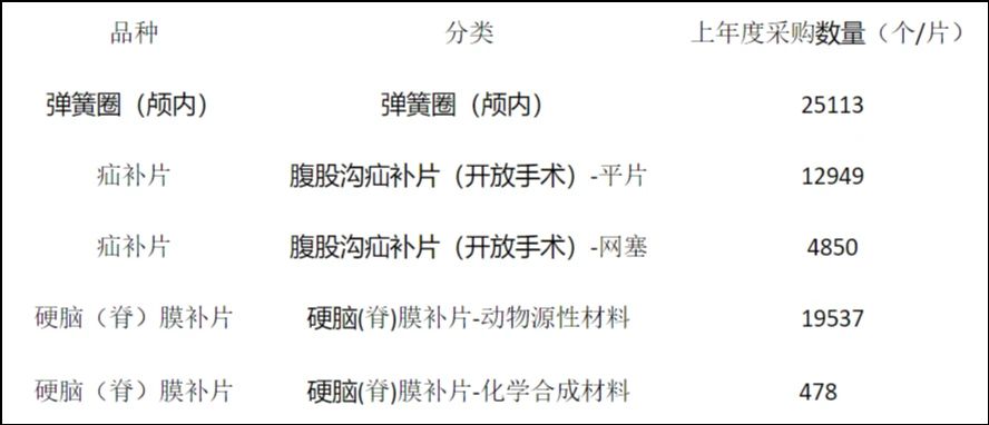 本次續(xù)約范圍為河北省組織彈簧圈(顱內)、硬腦(脊)膜補片、疝補片三類醫(yī)用耗材集中帶量采購。