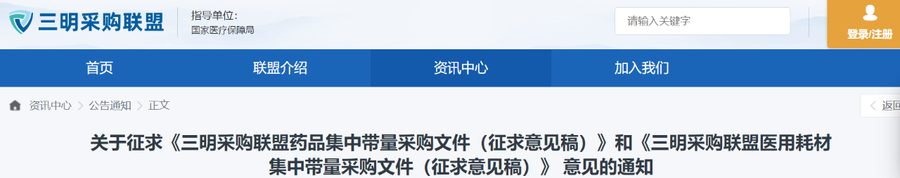 11月18日,三明采購聯(lián)盟發(fā)布《三明采購聯(lián)盟醫(yī)用耗材集中帶量采購文件(征求意見稿)》(完整見文末),意見征求截止時(shí)間為2024年11月22日。