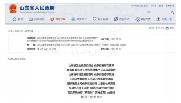 近日,山東省人民政府公布《山東省公立醫(yī)療機(jī)構(gòu)藥品采購(gòu)?fù)菩?ldquo;兩票制”實(shí)施方案》(下稱《實(shí)施方案》)