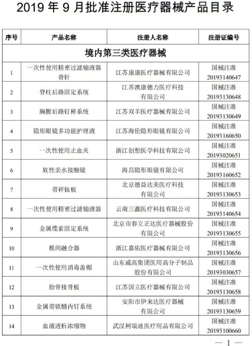 2019年9月,國(guó)家藥監(jiān)局共批準(zhǔn)注冊(cè)醫(yī)療器械產(chǎn)品184個(gè)。