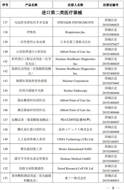 10月31日,國(guó)家藥監(jiān)局發(fā)布《國(guó)家藥監(jiān)局關(guān)于批準(zhǔn)注冊(cè)184個(gè)醫(yī)療器械產(chǎn)品公告(2019年第85號(hào))》。